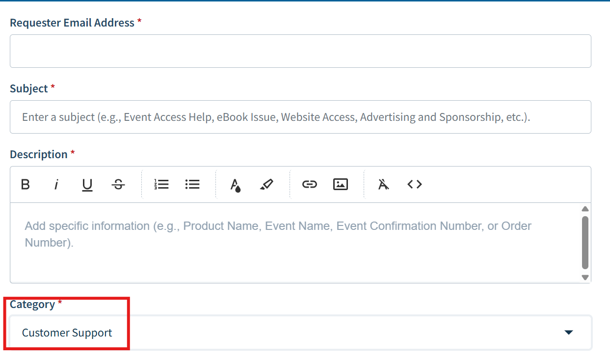 If you need information on IIA products or services, please submit a support ticket and select Customer Support from the dropdown question on the ticket form shown in the screenshot below.